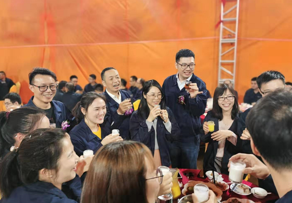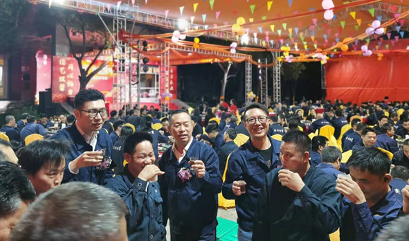 首先,周董事长对本次团年晚宴活动给予高度评价。周董说,今年我们的队伍迅速扩大,办公楼大厅已容纳不下这么多人,我们今年第一次将团年宴会移到了办公楼广场。从实际情况来看,今晚整体氛围非常好,各项组织跟踪到位,员工的节目表演也十分精彩。