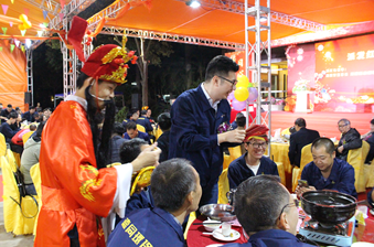 本次团年晚宴活动共分领导致辞、派发红包、表彰颁奖、节目表演、领导敬酒、幸运抽奖六大环节。各环节精彩纷呈、好评如潮,全体人员兴高采烈、激情澎湃。现场欢天喜地、喜气洋洋,特别是抽奖环节的笑声和掌声一浪高过一浪。整场晚宴活动始终充满着欢乐、祥和的气氛。