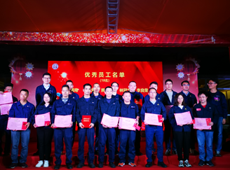 接着,副总经理岑国明宣读了《2019年表彰文件》。表彰了产量标兵、优秀员工、最佳进步团队、优秀管理者、合理化建议、表现突出者、先进集体、创新贡献,8个奖项。董事长周腾芳、总经理周建新、副总经理岑国明分别给获奖团队和个人颁发了奖牌、奖状和奖金。每个获奖的团队和个人,都笑得特别灿烂,这是一种被认同的幸福感。