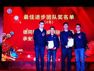 上图:总经理周建新、副总经理岑国明为获得“最佳进步团队奖”团队颁奖